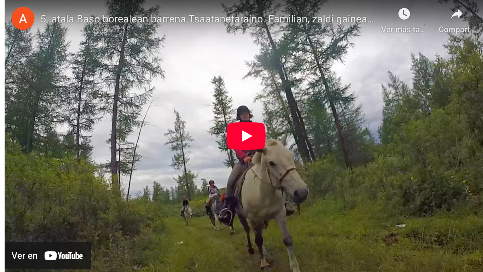 Mongoliako taigan bidaiatzen duen familia bat, zaldi gainean: pausuan, trostan eta baita galopan ere. Hau da Mila eta Asierrek, gure bi alabekin batera —Uxue (12)